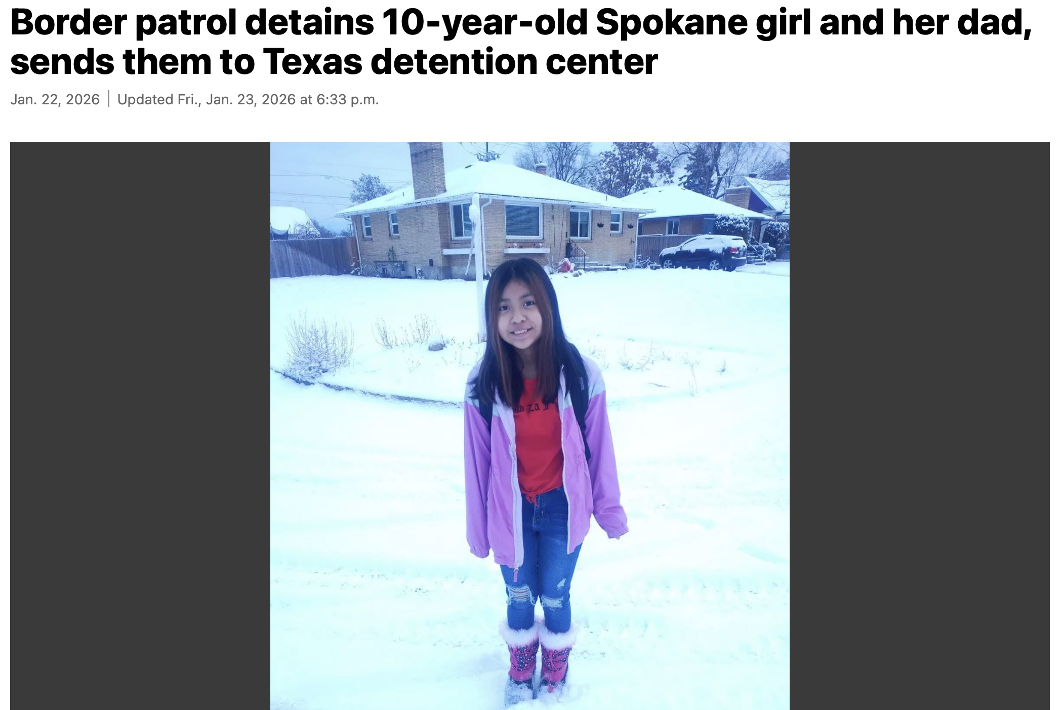 Spokane community, leaders, and state officials, including the governor and Sen. Murray, have commented on the case: “President Trump says he’s going after criminals – tell me what crime this 10-year-old committed. Spokane has been her home since she was four while her dad sought asylum,” Washington Gov. Bob Ferguson said in a statement. “Now she’s in a detention facility in Texas. This is wrong and un-American.”